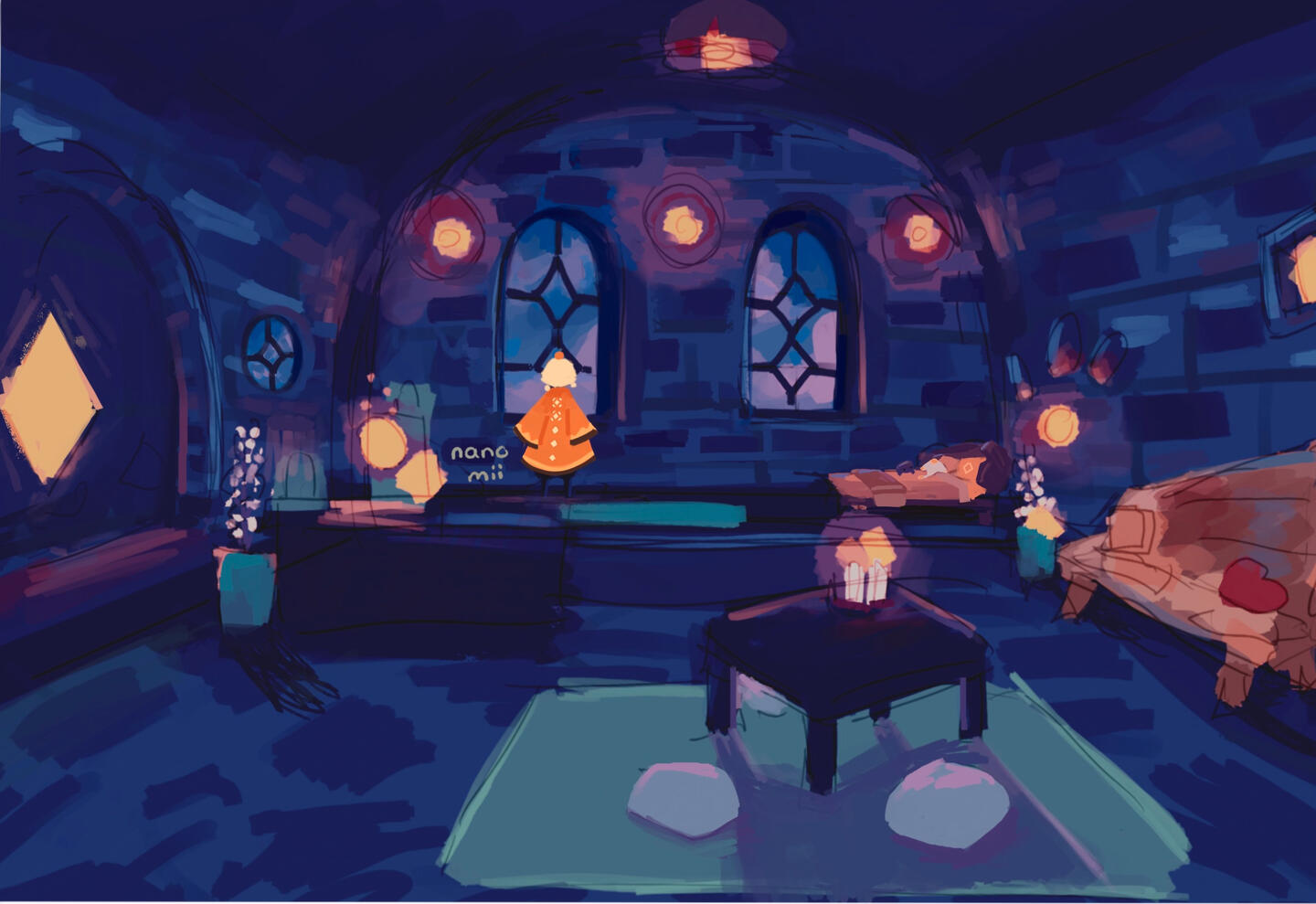 Painterly illustration Mostly background focused art1 character included Additional character 10€